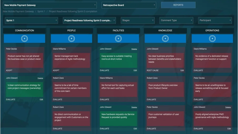 An integrated retrospective module enables the initiative team to continually evaluate, optimise and measure their performance challenges and emerging best practices.