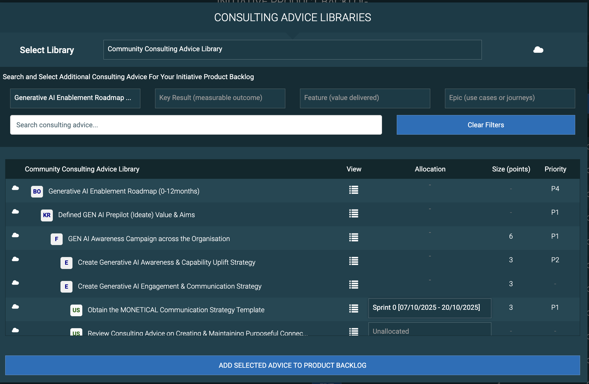 Curate new consulting advice and tailor the consulting schedule to accommodate unique initiative aims or adoption challenges.