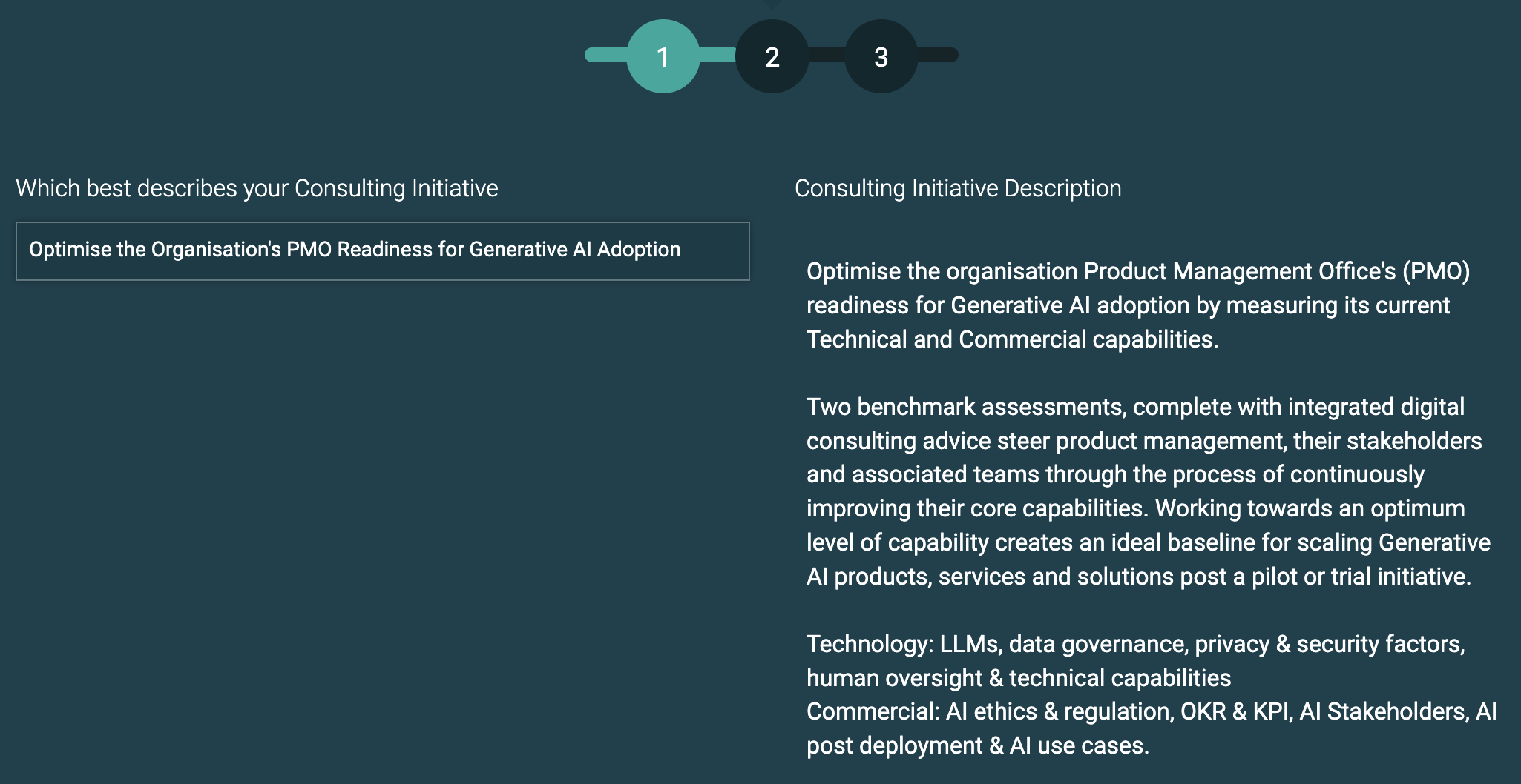 Select the Monetical consulting template that best represents the aims of the initiative, identify your initiative team and the key milestones.