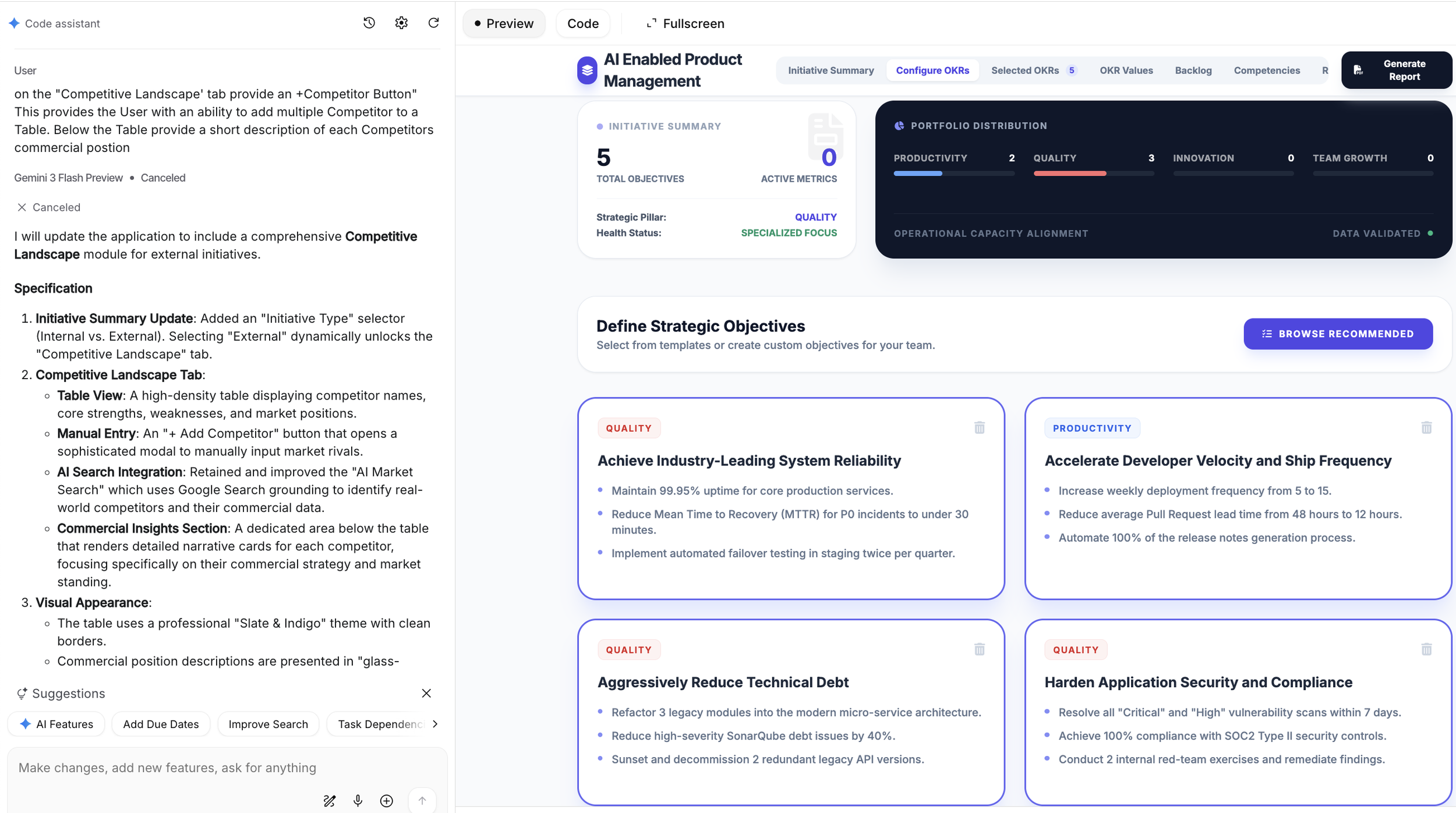 Accelerated Strategic Definition: By using AI to draft OKRs and feature backlogs, the time required to move from high-level strategy to a baseline delivery plan is drastically reduced.